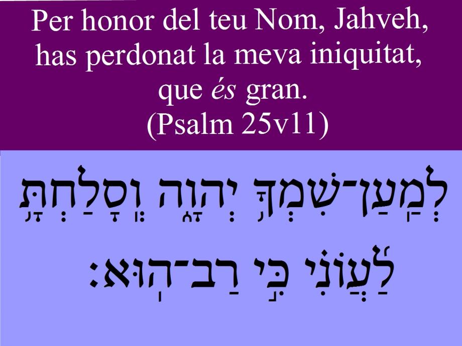 Psalm 25v11 Per honor del teu Nom, Jahveh, has perdonat la meva iniquitat, que és gran.