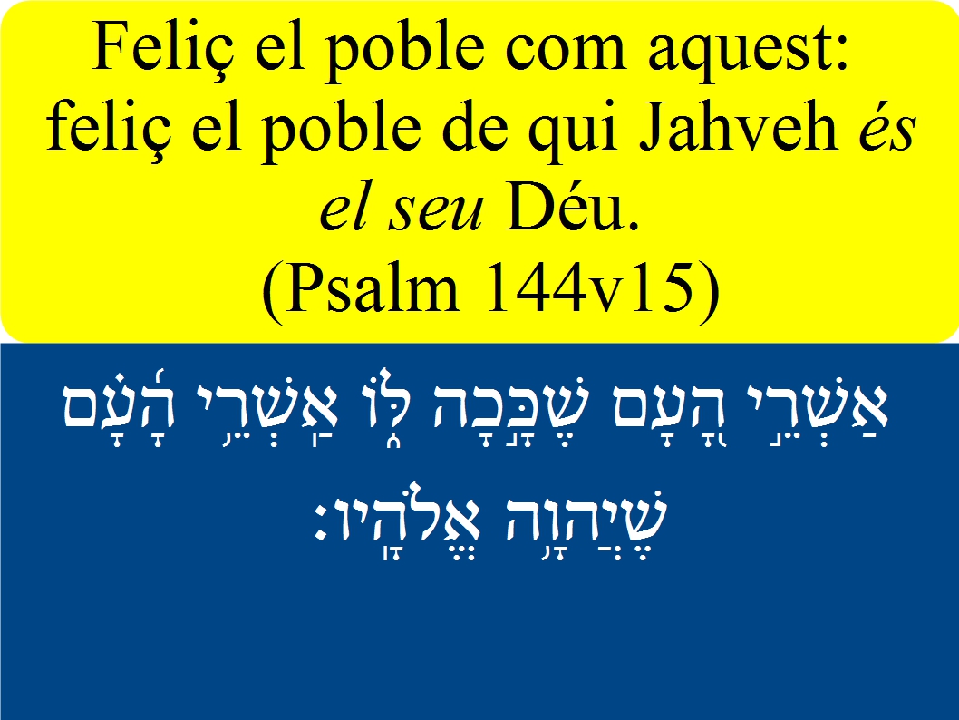 Psalm 144v15 Feliç el poble com aquest: feliç el poble de qui Jahveh és el seu Déu.