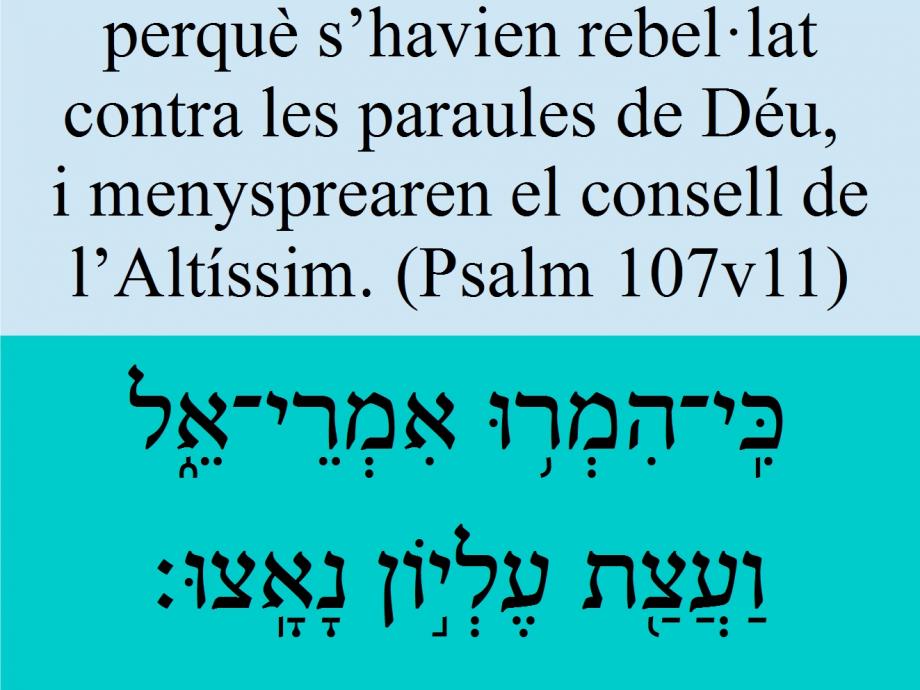 Psalm 107v11 perquè s’havien rebel·lat contra les paraules de Déu, i menysprearen el consell de l’Altíssim.