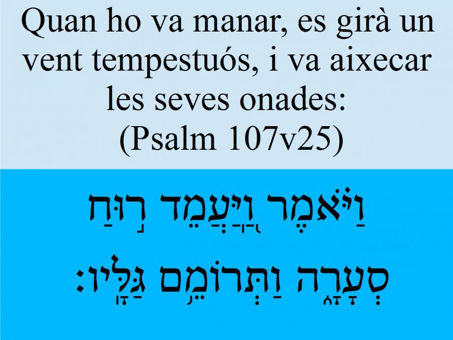 Psalm 107v25 Quan ho va manar, es girà un vent tempestuós, i va aixecar les seves onades: