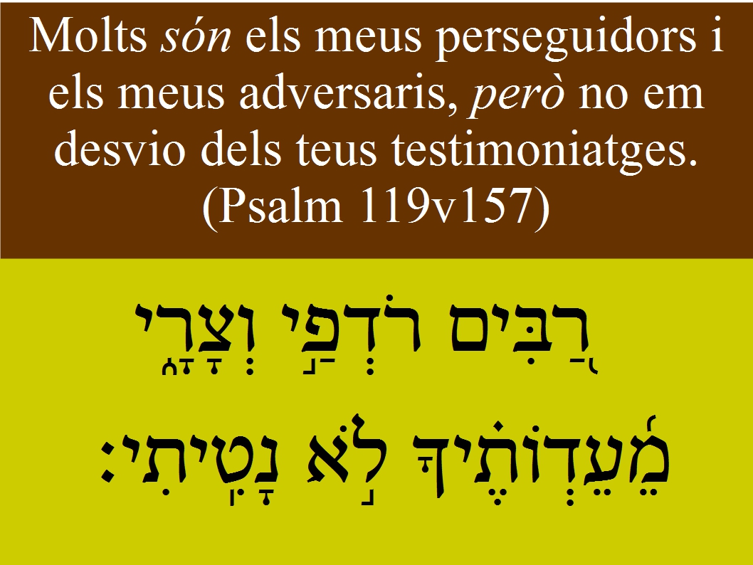 Psalm 119v157 Molts són els meus perseguidors i els meus adversaris, però no em desvio dels teus testimoniatges.