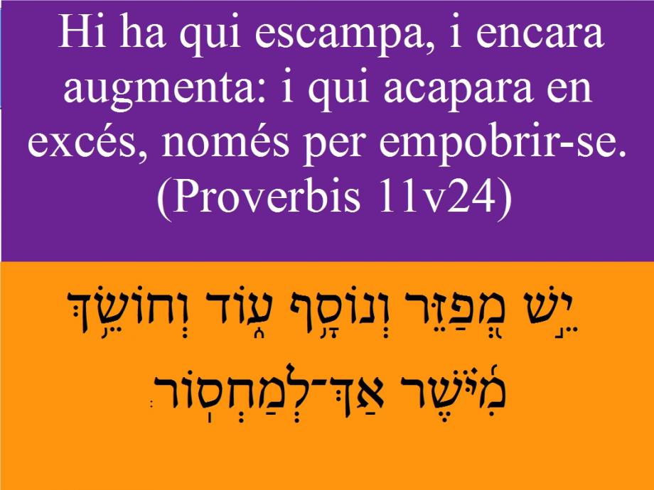 Proverbis 11v24 Hi ha qui escampa, i encara augmenta: i qui acapara en excés, només per empobrir-se.