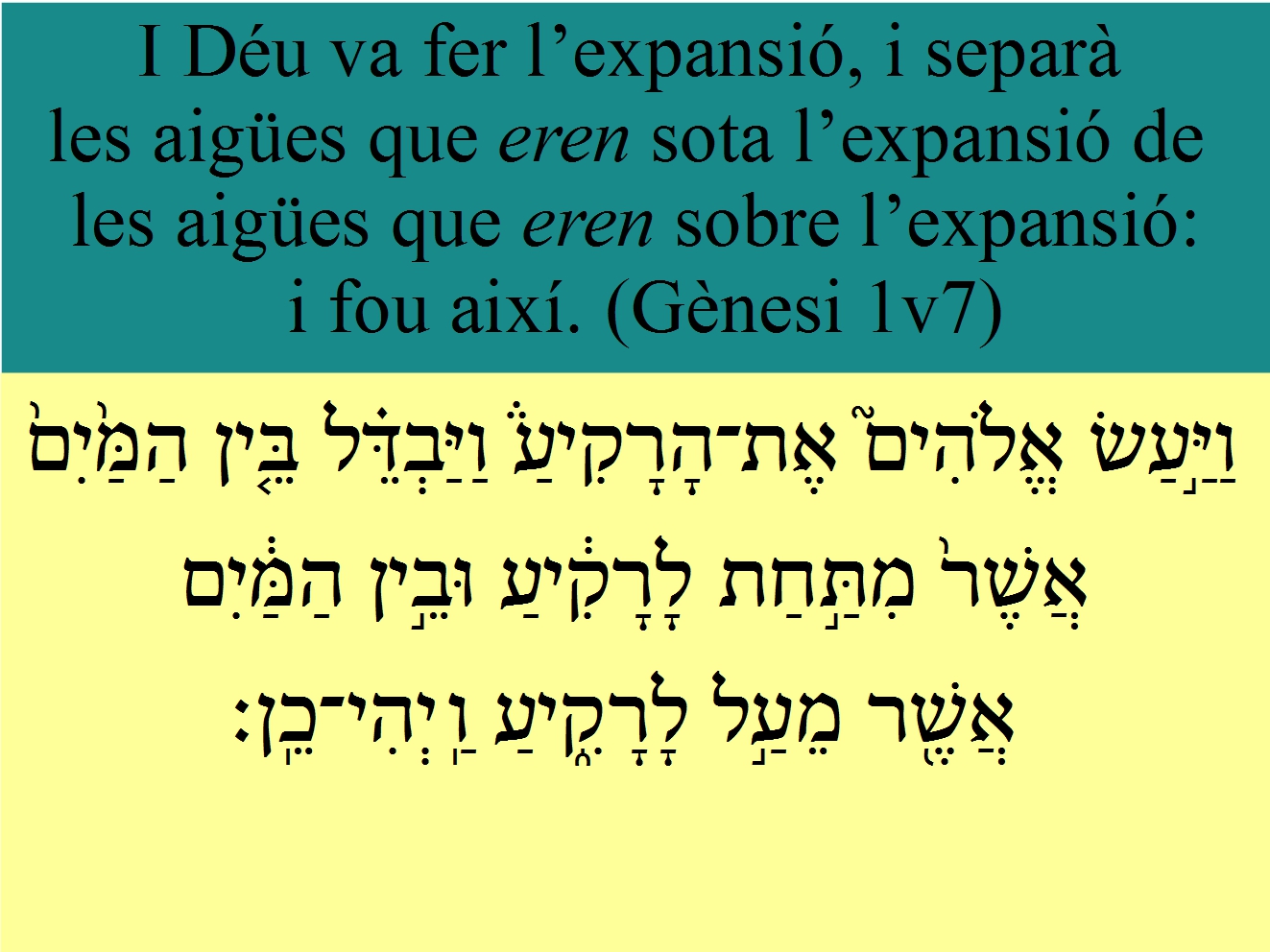 Gènesi 1v7 I Déu va fer l’expansió, i separà les aigües que eren sota l’expansió de les aigües que eren sobre l’expansió: i fou així.