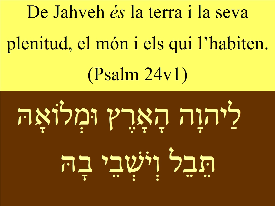 Psalm 24v1 De Jahveh és la terra i la seva plenitud, el món i els qui l’habiten.