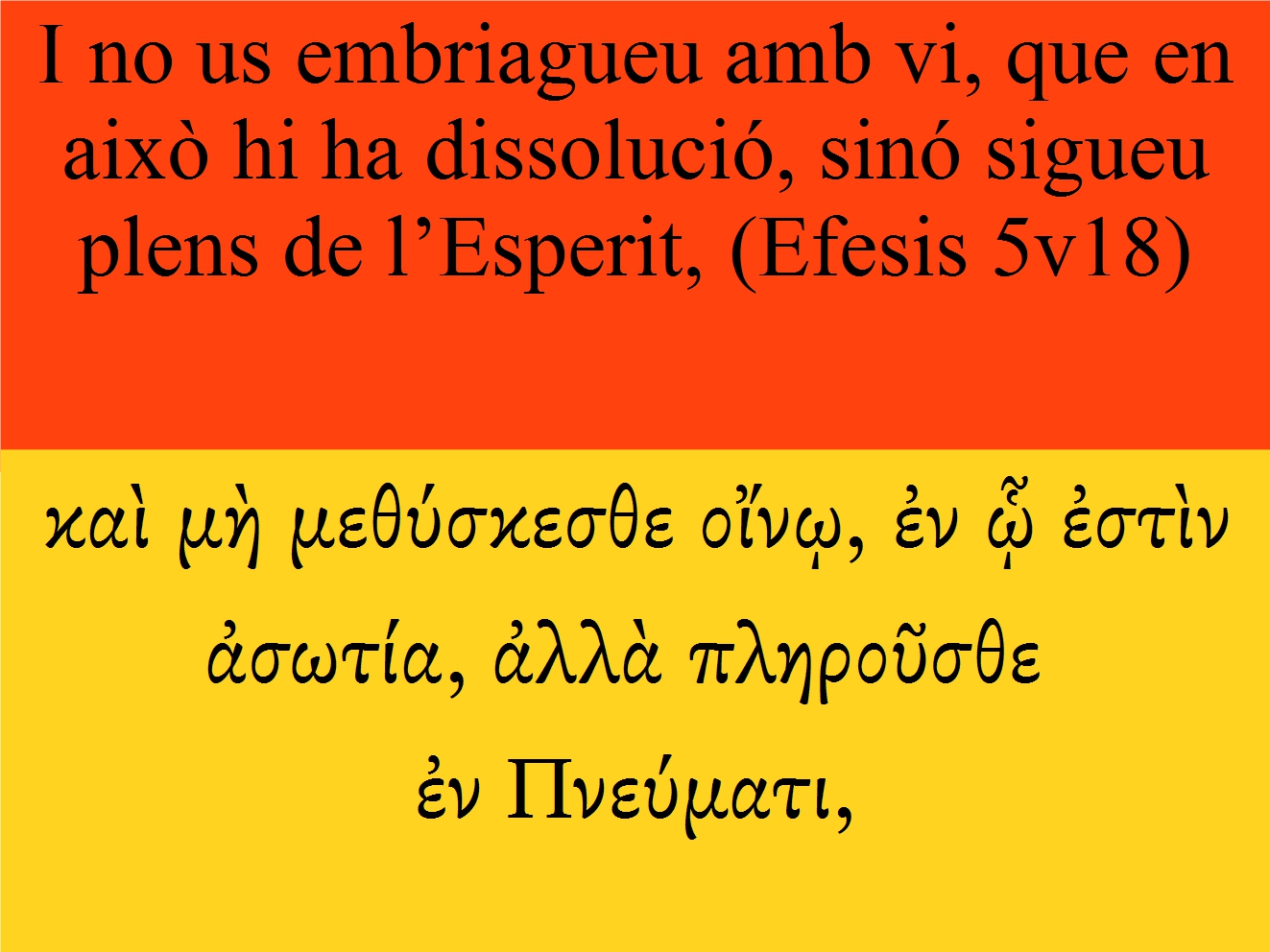 Efesis 5v18 I no us embriagueu amb vi, que en això hi ha dissolució, sinó sigueu plens de l’Esperit,
