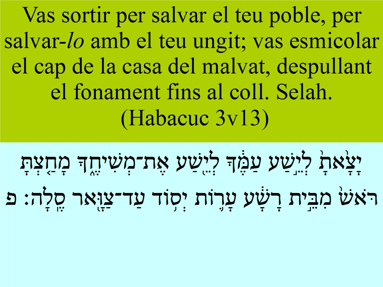 Habacuc 3v13 Vas sortir per salvar el teu poble, per salvar-lo amb el teu ungit; vas esmicolar el cap de la casa del malvat, despullant el fonament fins al coll. Selah.