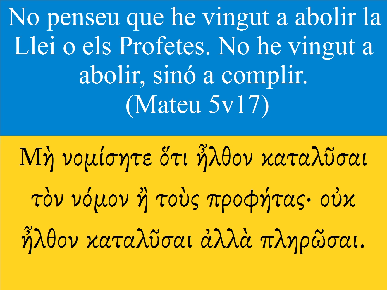 Mateu 5v17 No penseu que he vingut a abolir la Llei o els Profetes. No he vingut a abolir, sinó a complir.