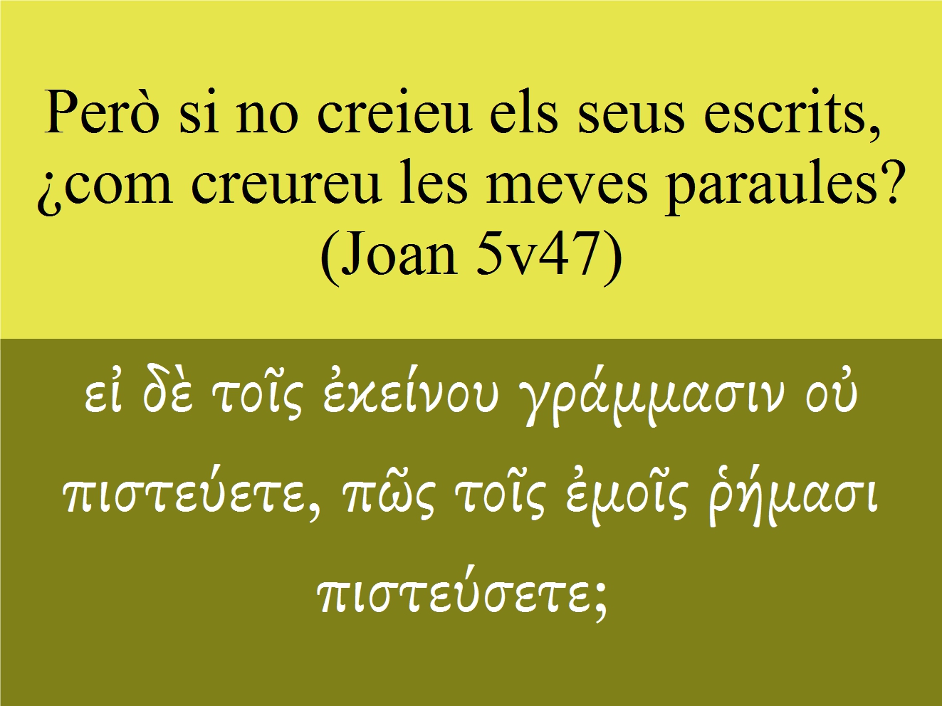 Joan 5v47 Però si no creieu els seus escrits, ¿com creureu les meves paraules?