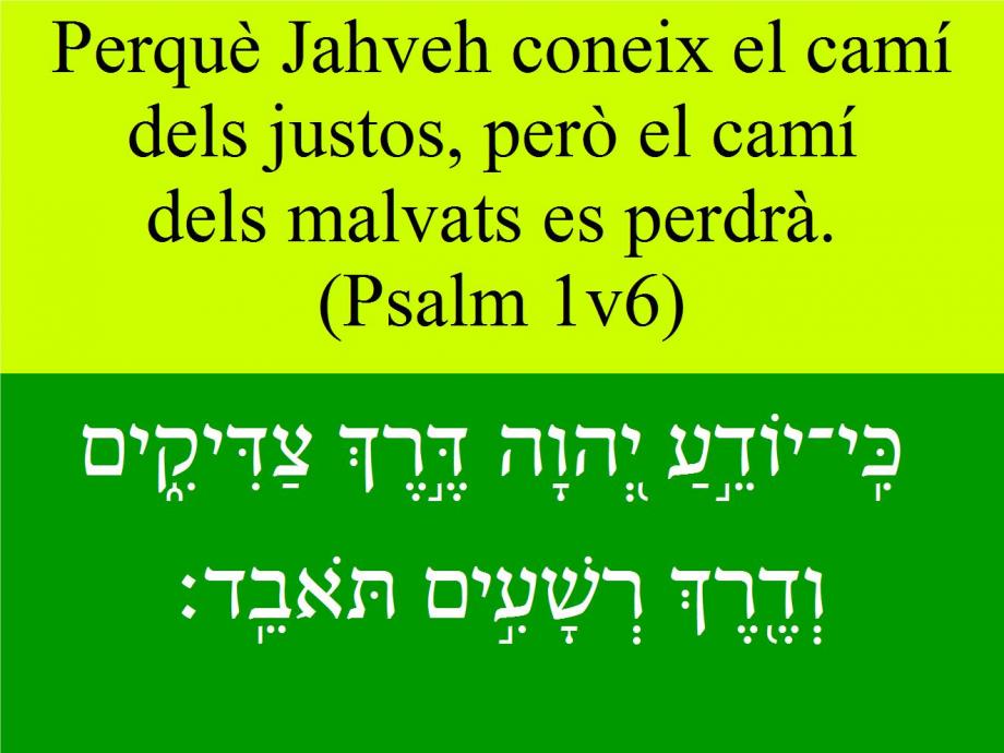 Psalms 1v6 Perquè Jahveh coneix el camí dels justos, però el camí dels malvats es perdrà.