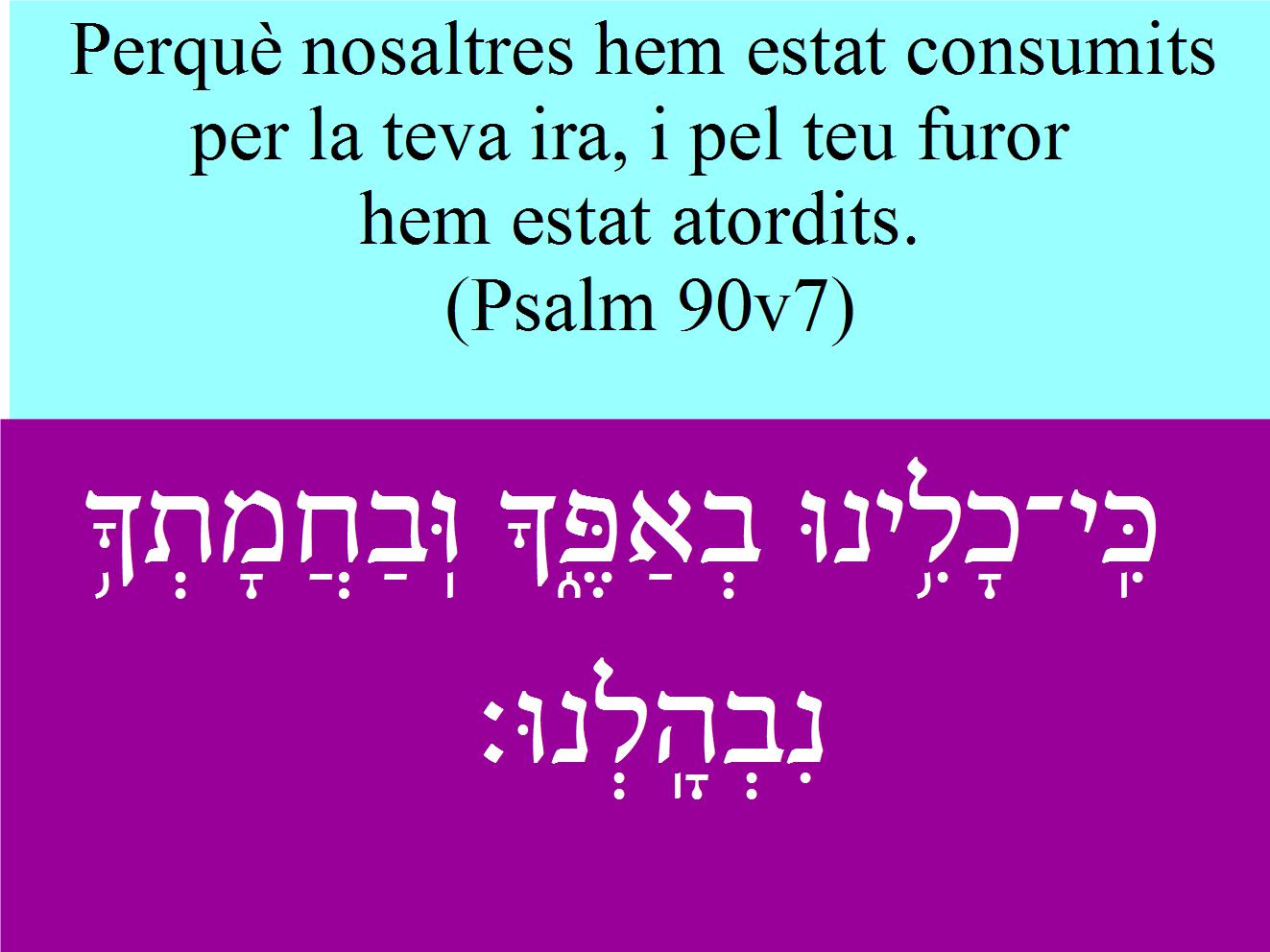 Psalm 90v7 Perquè nosaltres hem estat consumits per la teva ira, i pel teu furor hem estat atordits.