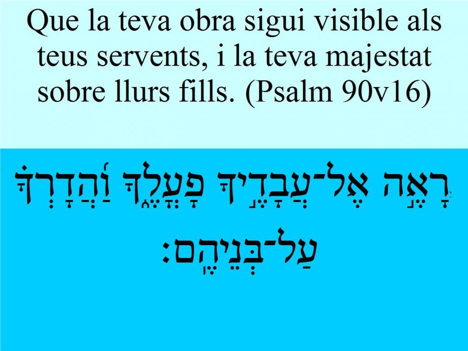 Psalms 90v16 Que la teva obra sigui visible als teus servents, i la teva majestat sobre llurs fills.