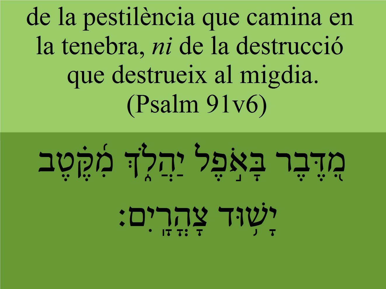 Psalm 91v6 de la pestilència que camina en la tenebra, ni de la destrucció que destrueix al migdia.