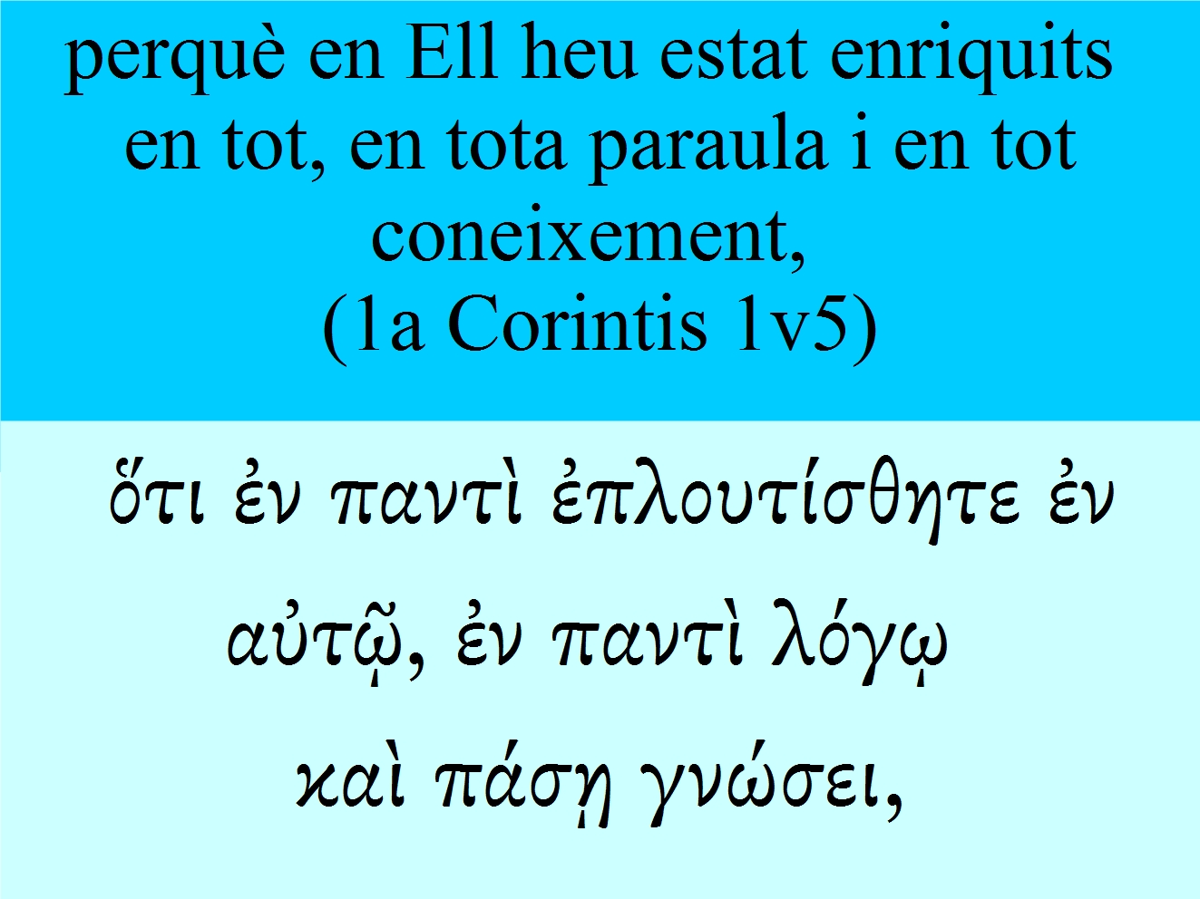 1Corintis 1v5 perquè en Ell heu estat enriquits en tot, en tota paraula i en tot coneixement,