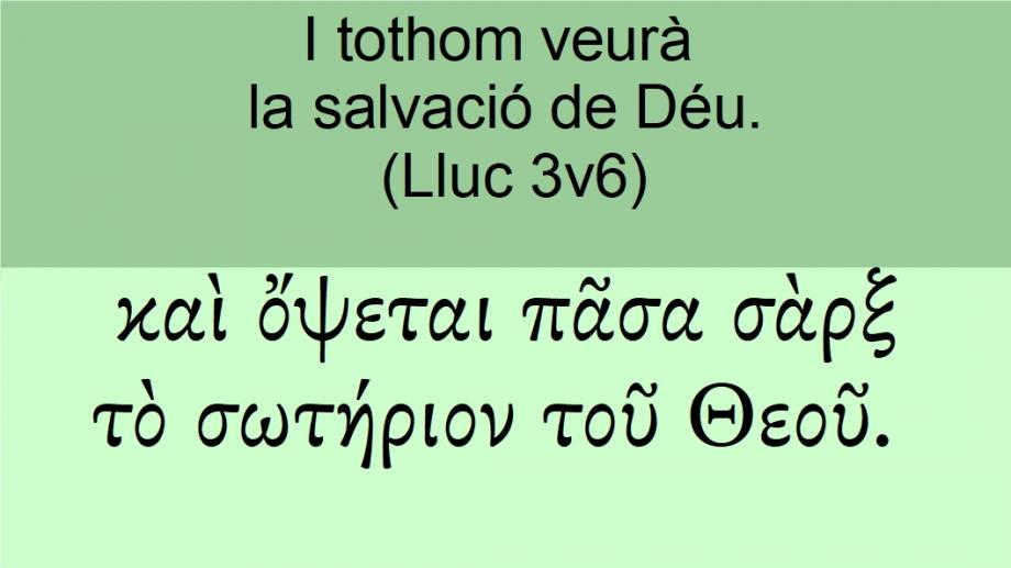Lluc 3v6 I tothom veurà la salvació de Déu. καὶ ὄψεται πᾶσα σὰρξ τὸ σωτήριον τοῦ Θεοῦ.