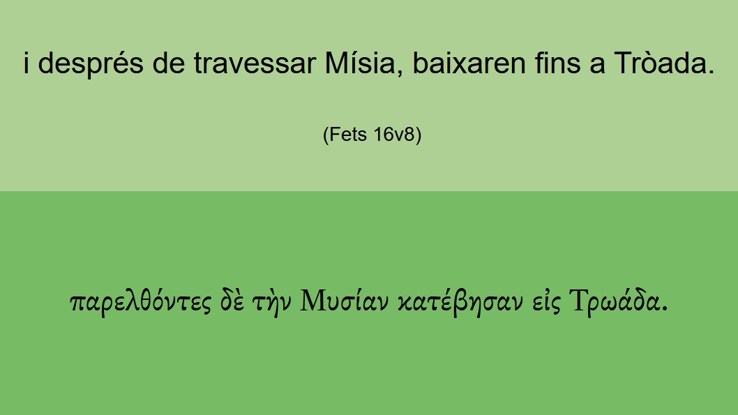 Data: 2026-01-08, dijousComentari: Fets 16v8 i després de travessar Mísia, baixaren fins a Tròada. παρελθόντες δὲ τὴν Μυσίαν κατέβησαν εἰς Τρωάδα.